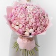 Букет гвоздик и роз с Мишкой на 14 февраля