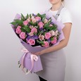 Букет розовых пионовидных и кустовых роз