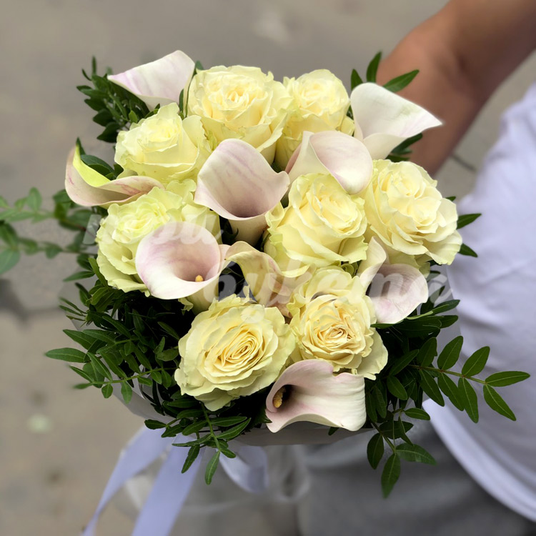 Белый букет из калл и роз