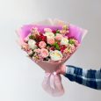 Букет белых хризантем и розовых эустом