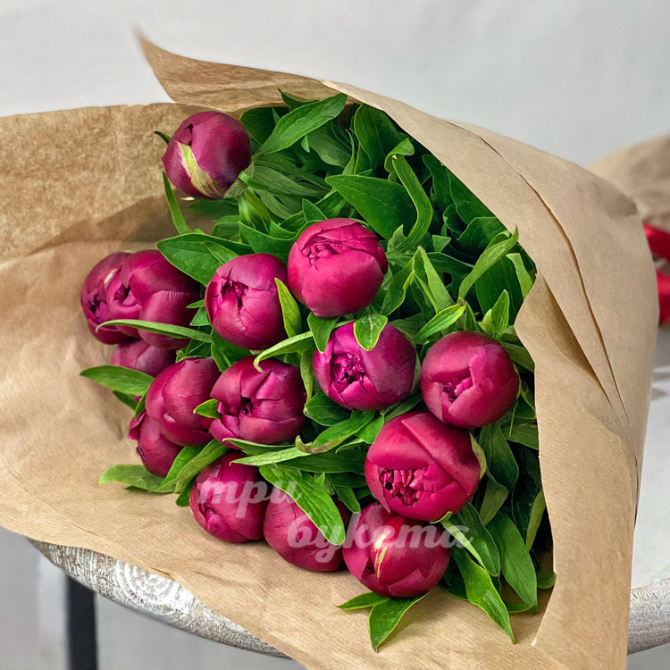 Букет из 15 пионов Ред Шарм