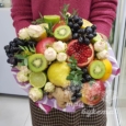 Букет из цветов и фруктов в крафте