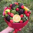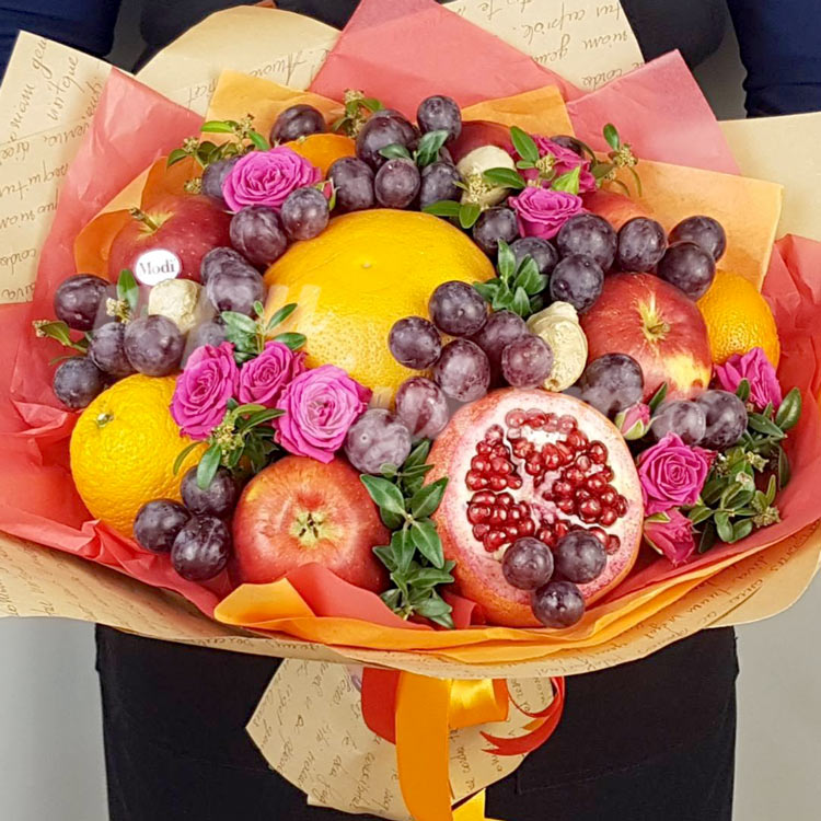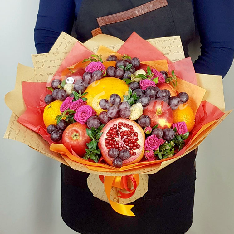 Букет из фруктов и кустовых роз