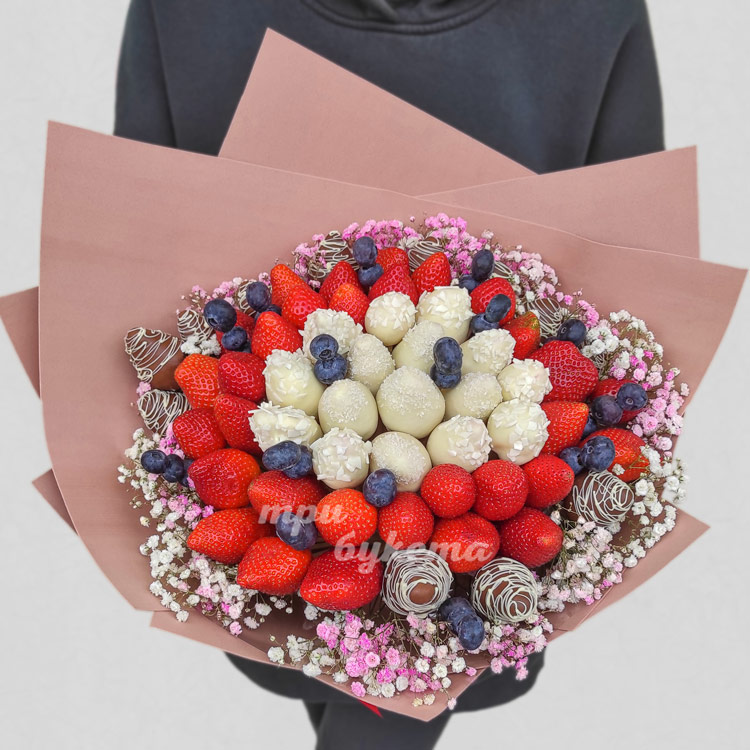 Букет из клубники с гипсофилой