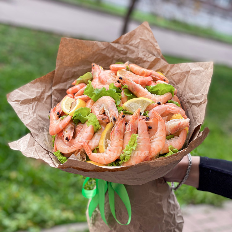 Букет из креветок, лимона и салата