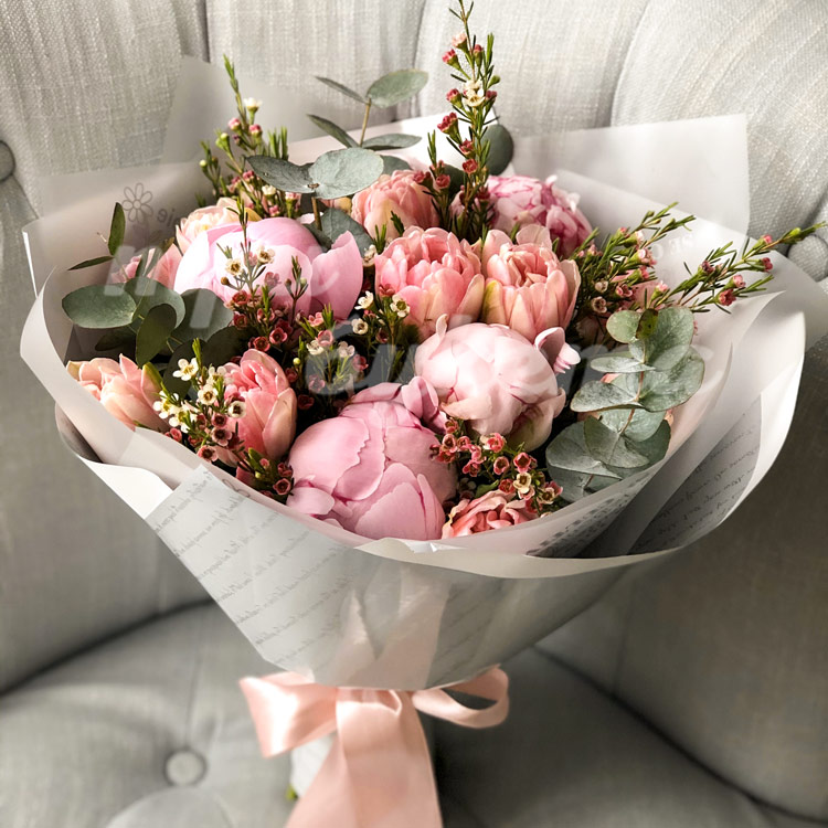 Букет из пионов и тюльпанов