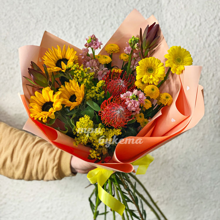 Букет с герберами и подсолнухами