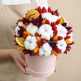 Цыпленок из хризантем в корзине