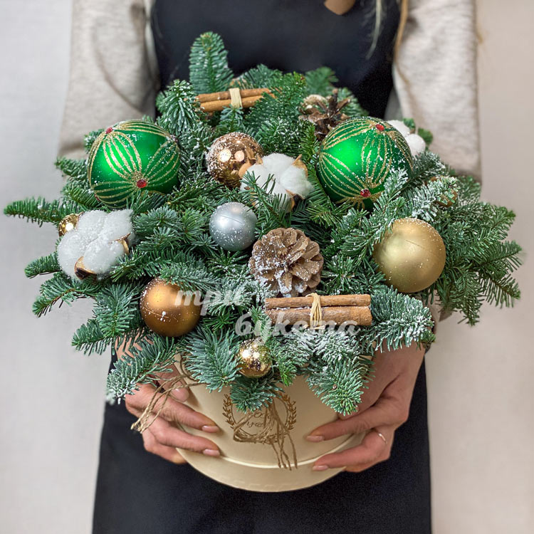 Еловые ветки в шляпной коробке