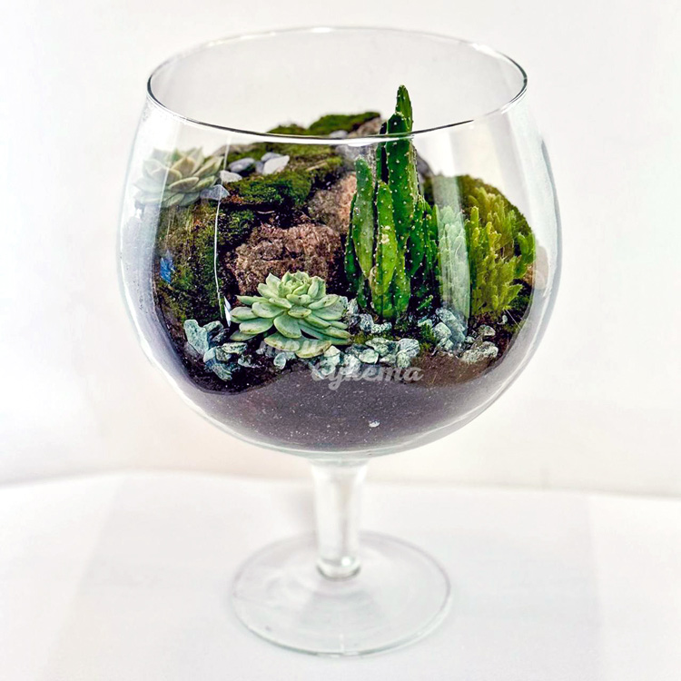 Флорариум чаша с кактусами и мхом