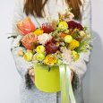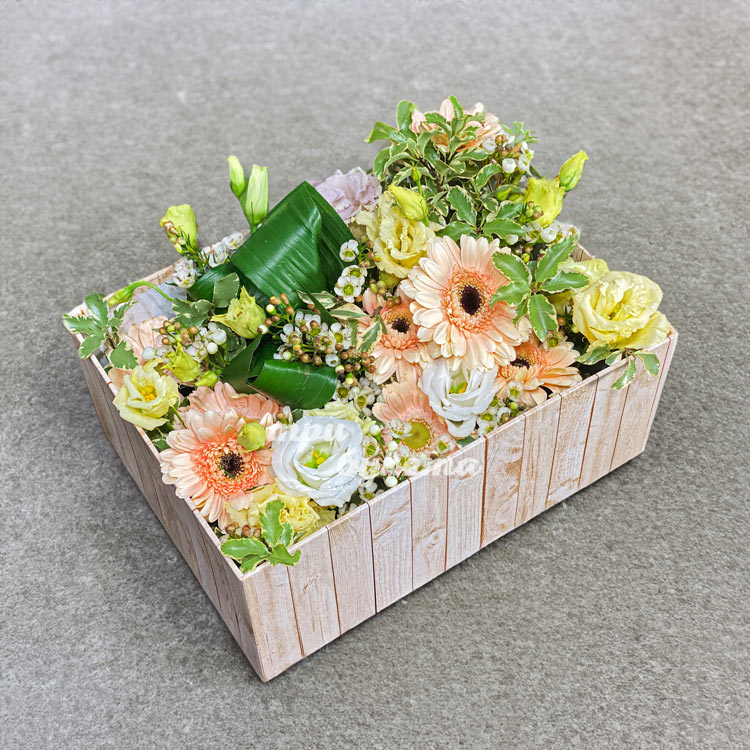 Композиция гербер и эстом в коробке