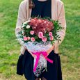Коробка кремовых и розовых роз и пионов