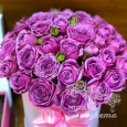 Коробка роз с зелеными хризантемами