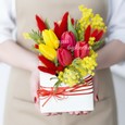 Коробочка белых гвоздик и эустом