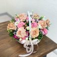 Корзина белых гербер с желтым пионом