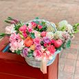 Корзина кустовых розовых роз