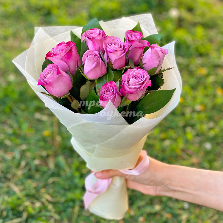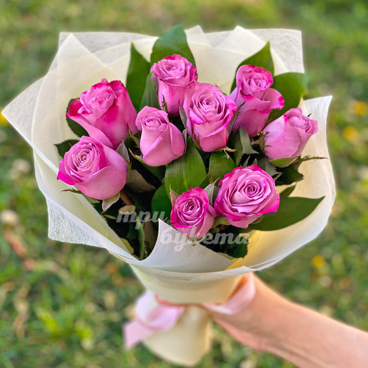 Небольшой букет из 9 розовых роз