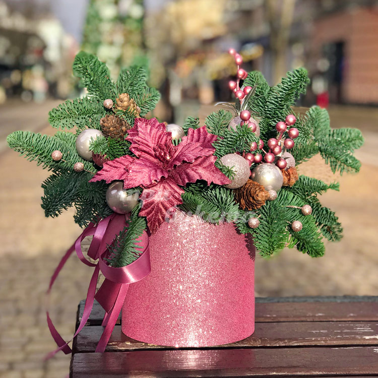 Новогодняя комп. с шарами и цветком