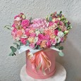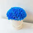 Ромашки и ирисы в шляпной коробке