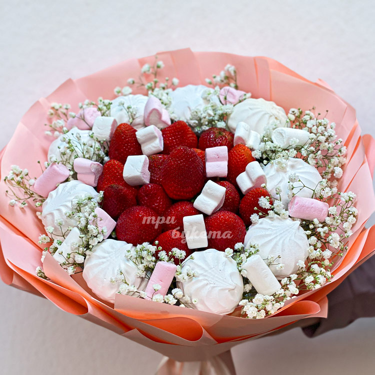 Сладкий букет из зефира и клубники