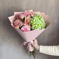 Зеленый букет из роз и гвоздик